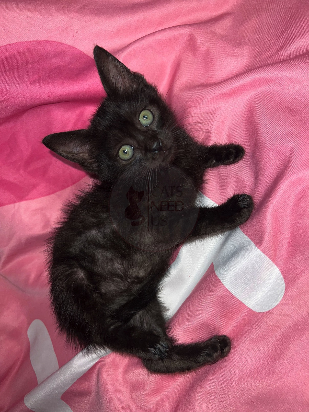 Jetzt träumt dieses wunderschöne kleine schwarze Kätzchen von einer Für-immer-Familie, die ihr ein sicheres und liebevolles Zuhause schenkt, das sie schon immer verdient hat. 🏡💕